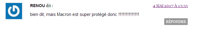 Malgré cette explication de Dreuz concernant son retrait, certains internautes doivent, soit ne pas savoir lire, soit ne pas comprendre ce qu’ils lisent, soit doivent penser que Dreuz leur ment aussi, puisqu’ils continuent à réagir contre E. Macron tout au long des deux journées suivantes. Pour l'un, si l'article est retiré, c'est que « Macron est super protégé ». Pour une autre, cela beau être un faux, elle demande « mais qu'est devenu l'argent ? ».