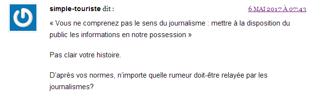 Cette définition du journalisme ne convient visiblement pas à tous les lecteurs : « le journalisme sérieux devrait rester crédible » écrit l’un d'eux tandis qu’un autre questionne : « d’après vos normes, n’importe quelle rumeur doit-être relayée par les journalistes ? ».